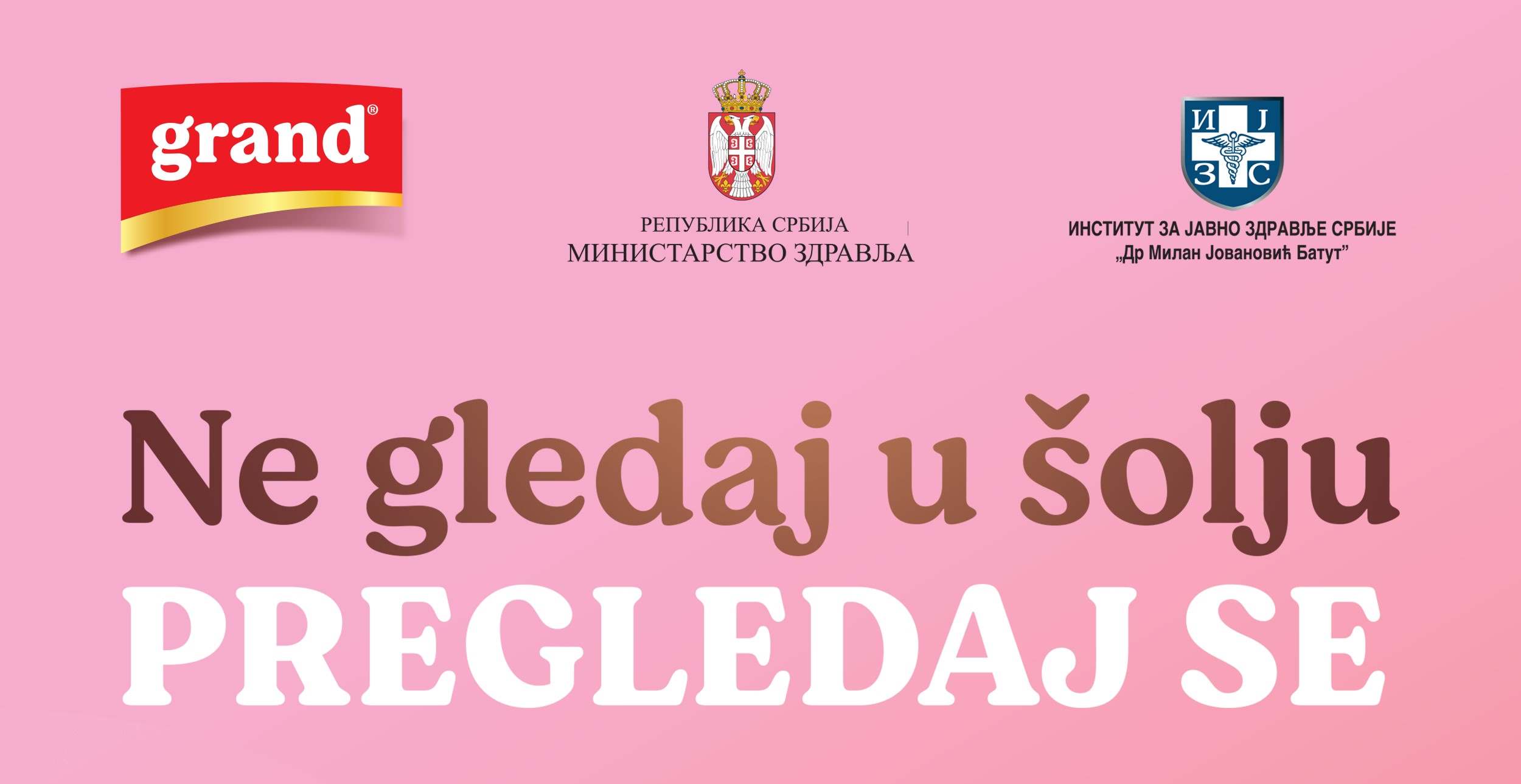 „Roze oktobar“ posvećen je borbi protiv raka dojke, a ovog meseca obeležava se i poseban jubilej – pet godina otkako Grand kafa kroz svoju kampanju Hajde da imamo vremena za pregled i prepoznatljivi slogan „Ne gledaj u šolju, pregledaj se!“ podseća žene na važnost preventivnih pregleda. Kroz akciju besplatne mamografije, koju u okviru projekta sprovodi Institut za javno zdravlje Srbije „Dr Milan Jovanović Batut“, pod pokroviteljstvom Ministarstva zdravlja, do sada je pregledano više od 45.000 žena.