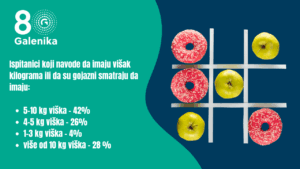Zabrinjavajuć je podatak da se ljudi koji znaju da imaju višak ne osećaju dovoljno osnaženo da nešto učine po tom pitanju. Čak 64 odsto ispitanika koji su gojazni ili smatraju da imaju prekomernu težinu, ne preduzimaju ništa da bi smršali.