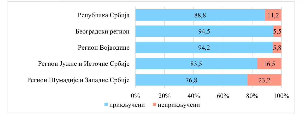 Najveća priključenost stanovništva je bila u Beogradskom regionu, a najmanja u regionu Šumadije i Zapadne Srbije.