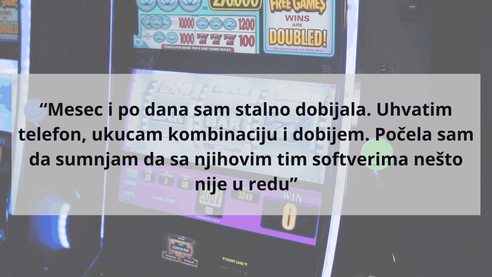 “Još uvek to radim ali ne tako često jer nemam redovna primanja, redovnu platu pa ne mogu ni da se kockam. To radim jednom ili dva puta nedeljno sada i kladim se na tenis, fudbal i slično“, dodaje sagovornica.
