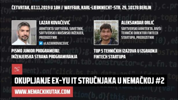 Drugo po redu okupljanje IT stručnjaka sa prostora bivše Jugoslavije u Nemačkoj biće održano u četvrtak, 7. novembra, u prostorijama berlinskog Vejfer tehnolodžisa (Wayfair Technologies). Ulazak na d...