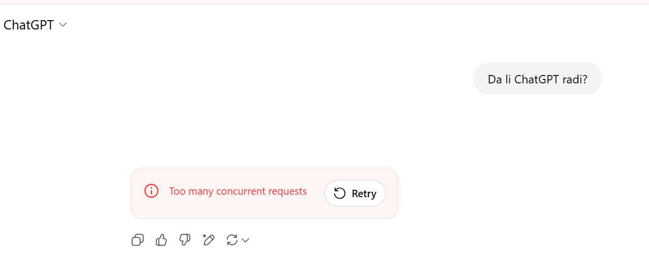Umesto odgovora na svoj upit, korisnici su dobijali poruku o grešci ili obaveštenje da postoji prevelik broj zahteva u tom trenutku.