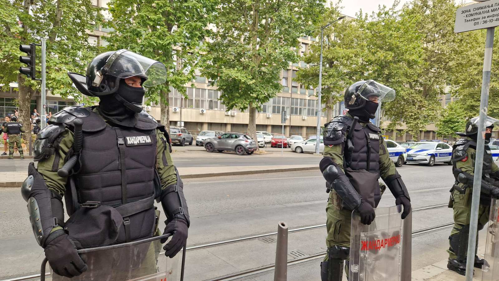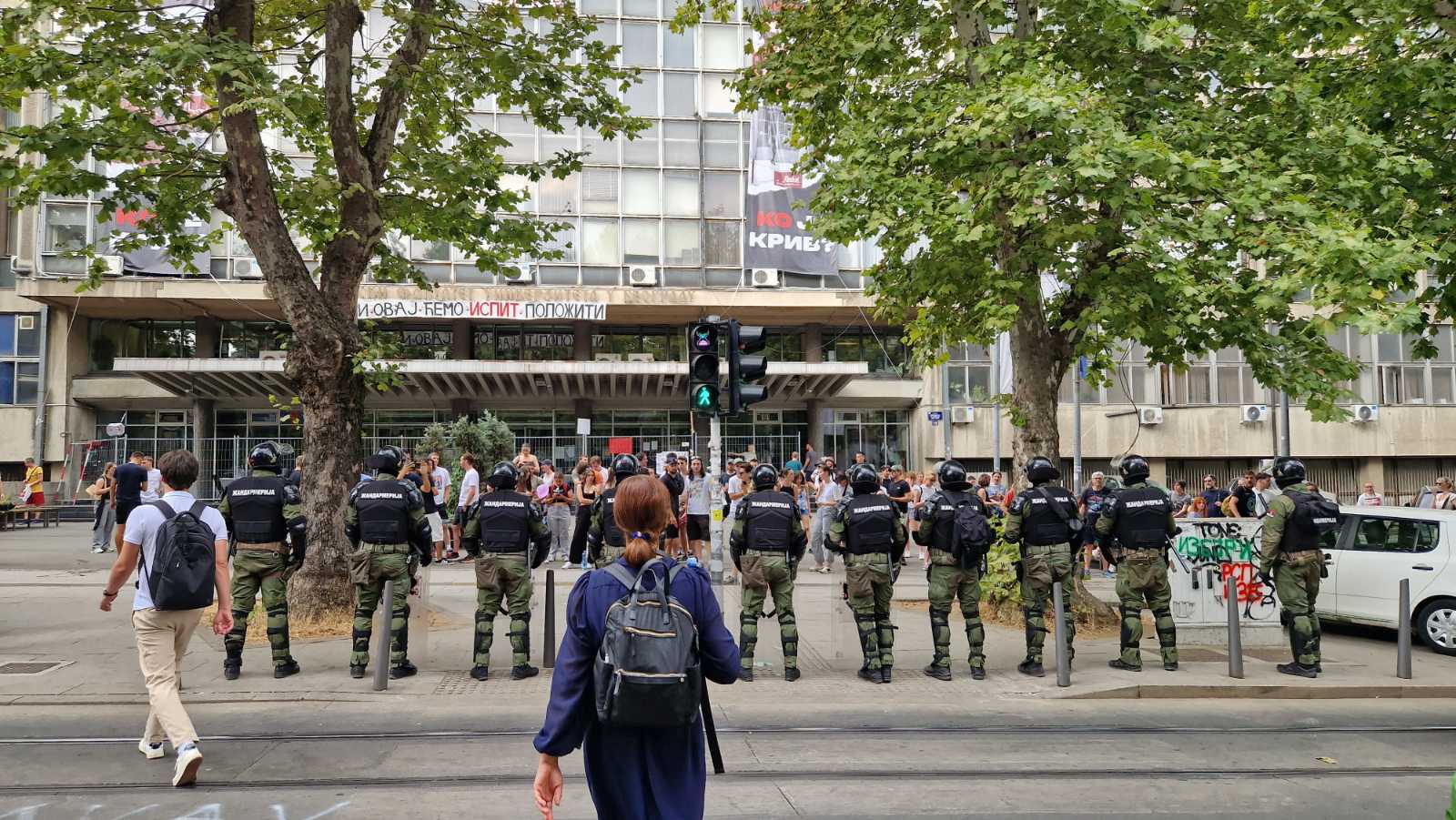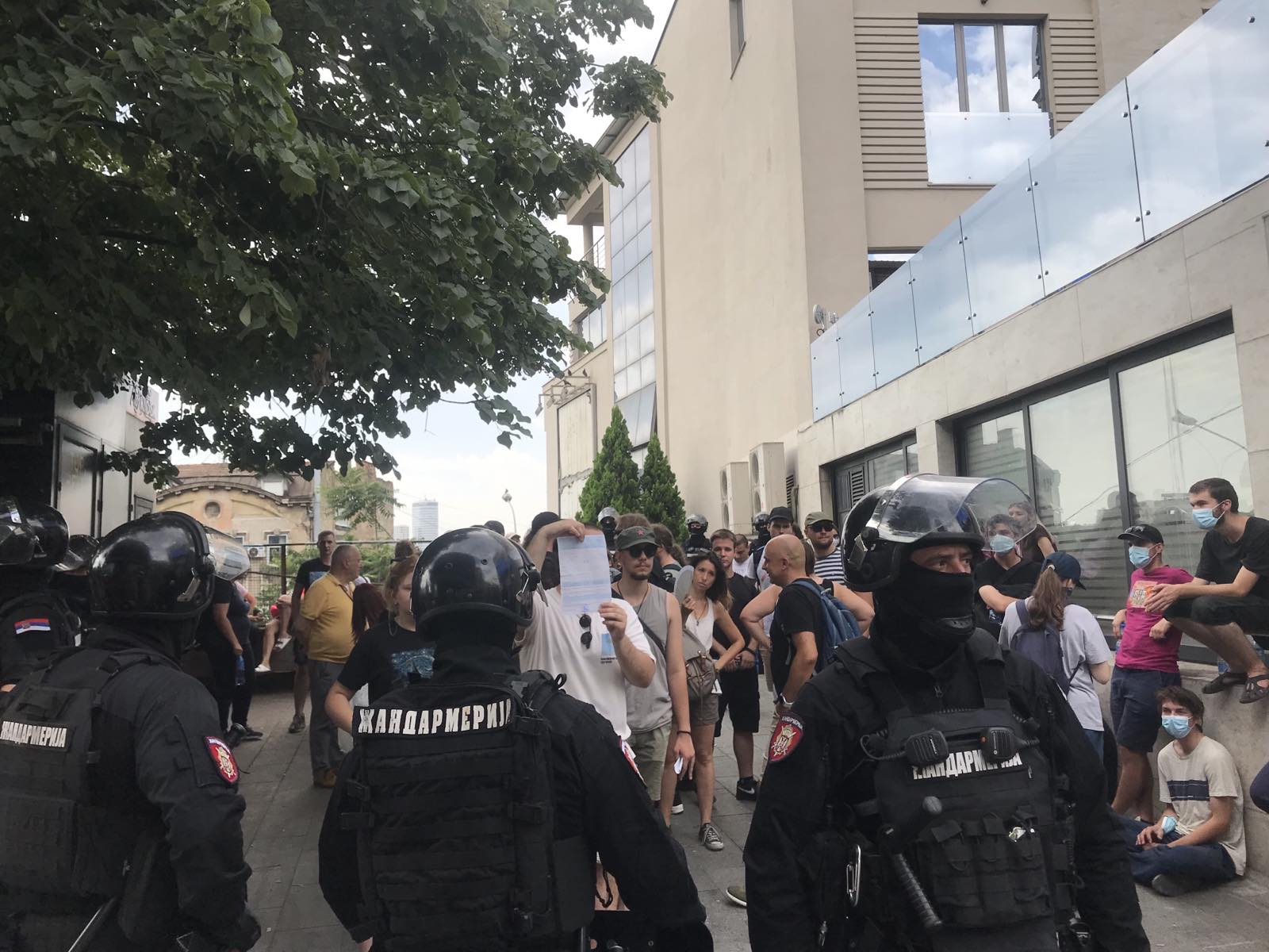 Ispred zgrade se nalazi veći broj policajaca, pretpostavlja se da su pojedini i u civilu.