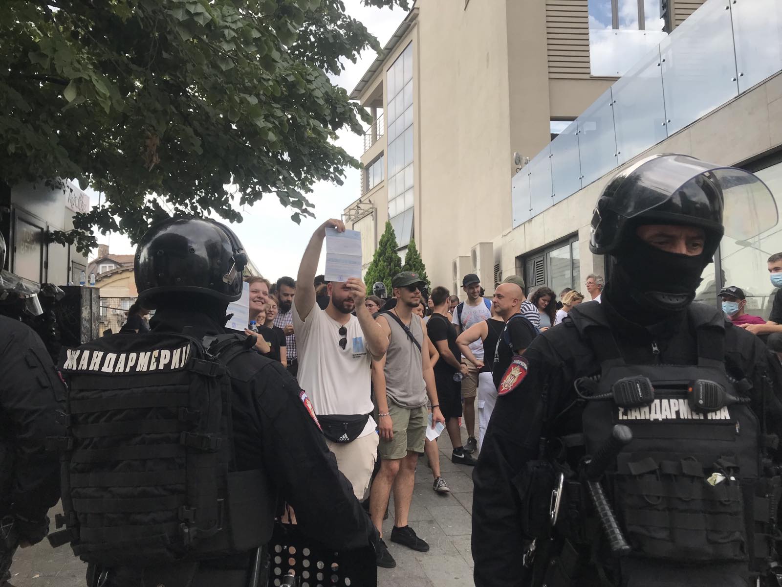 Na Zelenom vencu policija je napravila prsten oko okupljenih građana na trotoaru. Pojedini demonstranti su dobili zapisnik o izvršenoj kontroli učesnika u saobraćaju, sa kojim se se potom slikali. Saobraćaj se odvijao nesmetano, a kako javljaju mediji, žandarmerija se ubrzo povukla sa Zelenog venca.
