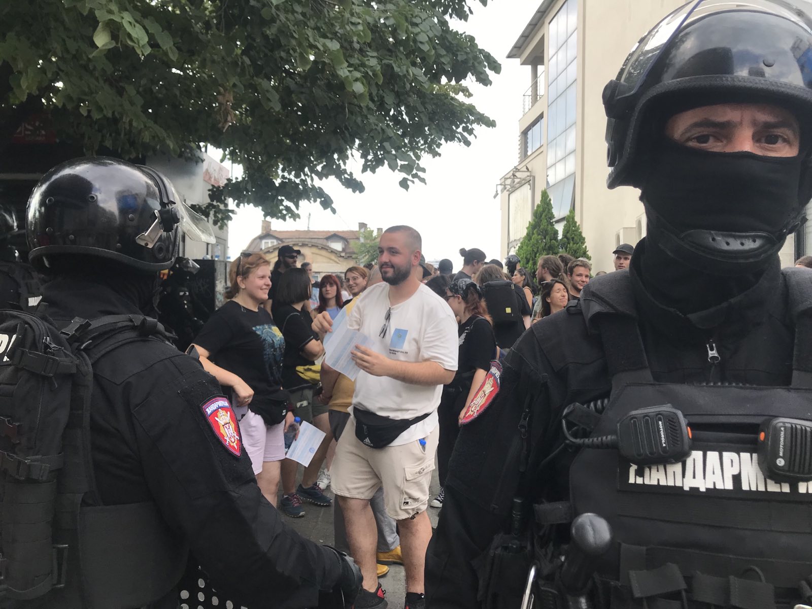 Građanka iz zbora Stari grad poručila je okupljenima u Brankovoj ulici da zajedno isprate studente do njihovih fakulteta, “kako bi stigli bezbedno”.