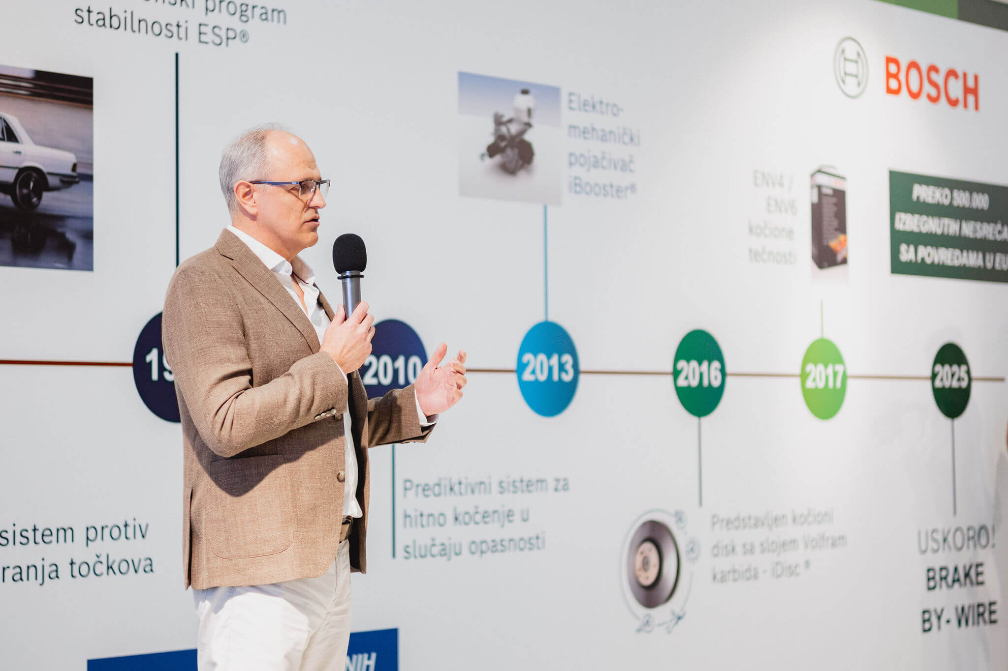 ,,Od 1927. do danas Bosch je nastavio da se kreće. I to je ono što Bosch radi svih ovih godina, razvijamo tehnologije koje možda ne primećujete svakog dana, ali koje su tu onda kada je najvažnije. Danas razvijamo sisteme koji ne samo da reaguju, već i predviđaju. Sisteme koji koče samostalno, koji se uklapaju u električne pogone i koji se prilagođavaju svakom tipu vozila” rekao je direktor prodaje Bosch Mobility Aftermarket divizije, Bratislav Kocić.