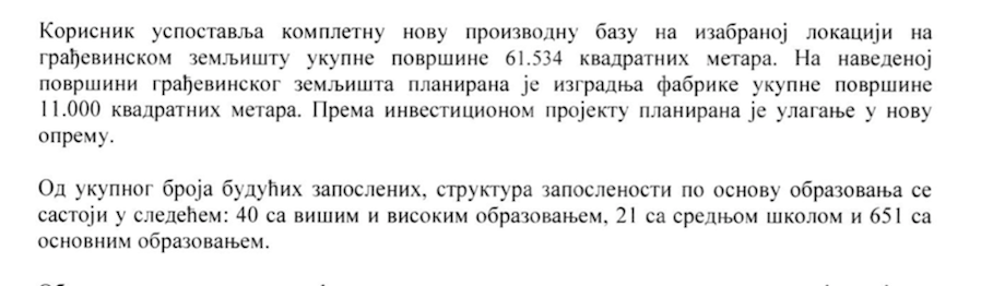 Problem je, međutim, što je sama korejska kompanija obavestila Komisiju za kontrolu državne pomoći da će od planiranih 700 radnika, čak 651 radnik biti samo sa osnovnom školom, a 40 sa višom i visokom.