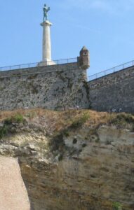 To je miocenski, krečnjački sprud koji se nalazi ispod spomenika Pobedniku. Ovaj sprud se pruža od Kalemegdana do Tašmajdana i njegov veći deo se nalazi ispod ulica užeg centra Beograda, da bi na površini bio vidljiv na Tašmajdanu. Osim krečnjaka, stariju stensku podlogu su zaravnjivali i drugi sedimenti miocenske starosti, kao što su peščari, glici, laporci koji su po svojim tehničkim karakteristikama manje čvrsti od mezozojskih.