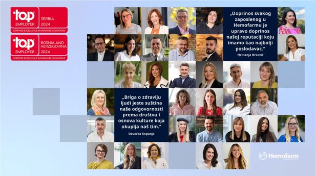 Treću godinu zaredom Hemofarm je proglašen Najboljim poslodavcem (Top Employer) u Srbiji i Bosni i Hercegovini od strane „Top Employers Institute“, nezavisne organizacije koja globalno ocenjuje kompanije u p...