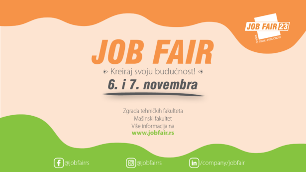 Tradicionalno, svakog prvog ponedeljka i utorka u novembru, ove godine 6. i 7. novembra, održaće se Sajam poslova i praksi „JobFair – Kreiraj svoju budućnost!” u Zgradi tehničkih fakulteta (Bulevar kralja Al...
