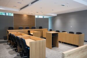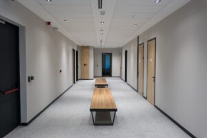 Unutrašnjost Palate čine savremene, prostrane sudnice, za zasebnim prostorijama za simultano prevođenje, kao i istražni kabineti, administrativne prostorije i zasebne prostorije namenjene maloletnim licima. Celokupan prostor prilagođen je u potpunosti radu pravosudnih institucija, sa naglaskom na bezbednost kako zaposlenih, tako i svih trećih lica.