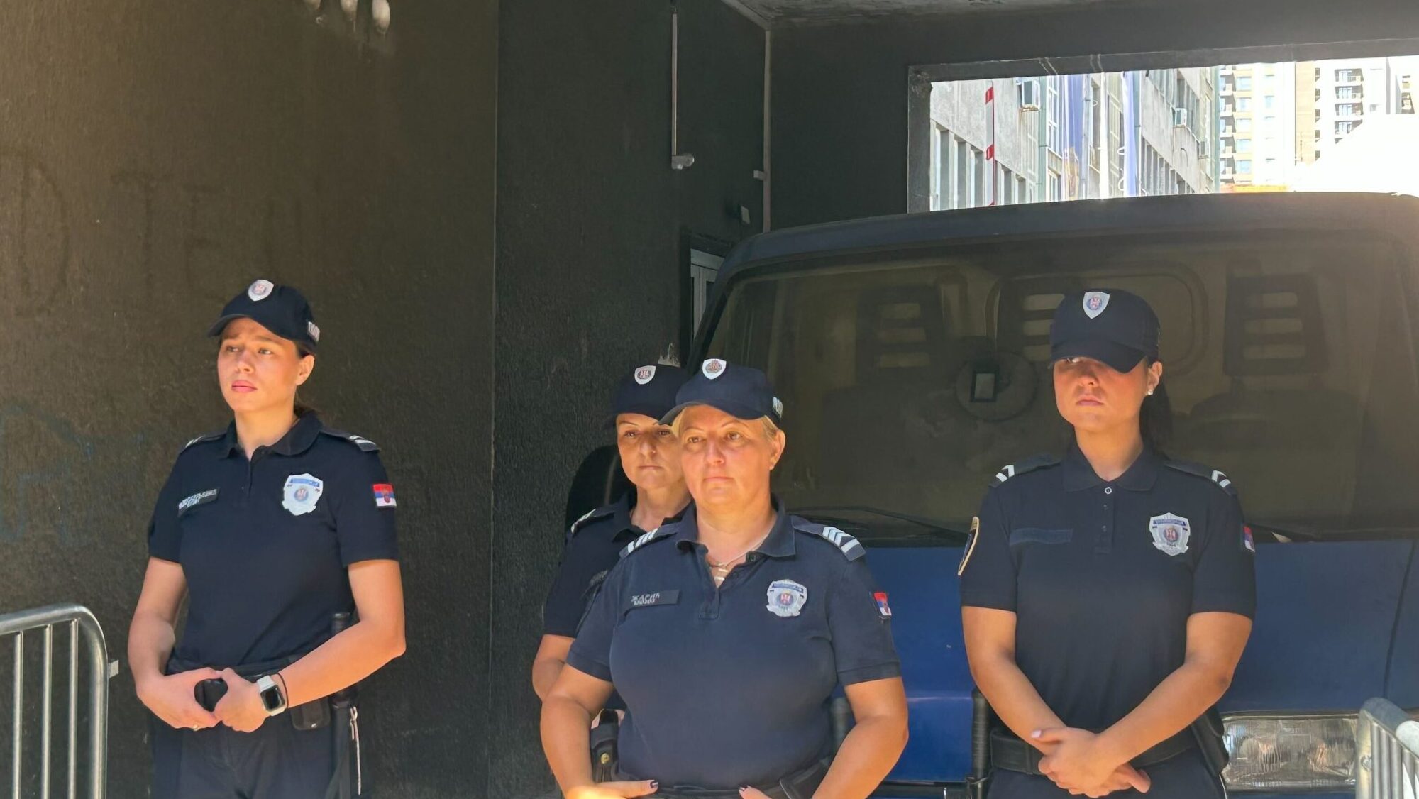 Ispred sedišta JZO u Sarajevskoj ulici je postavljena ograda, a prisutne su bile samo žene policajke.