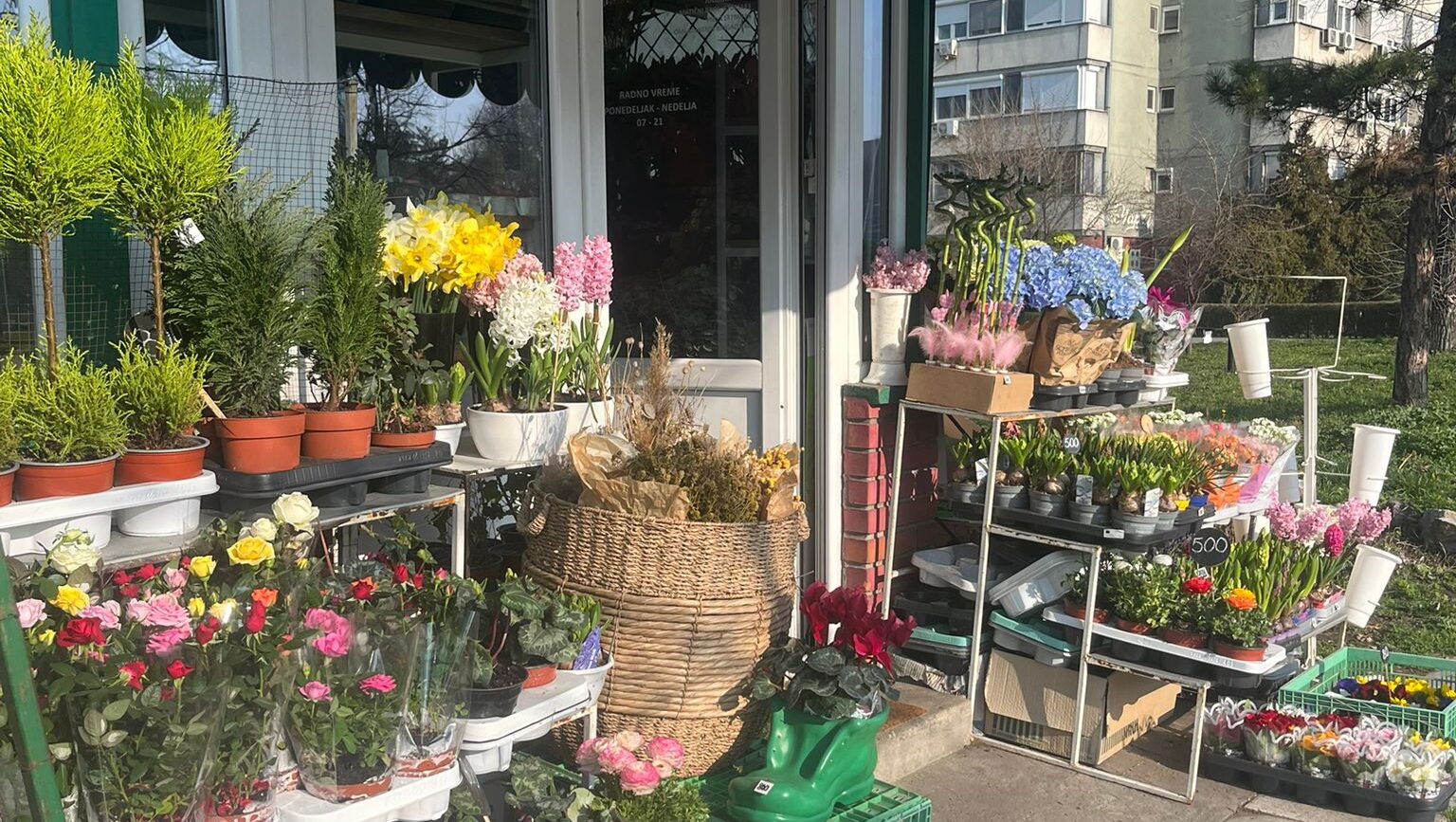 Na pijaci na Novom Beogradu štandovi su već puni ruža, lala, orhideja i ostalog ukrasnog bilja, rezanog ili aranžiranog u buketima i korpicama.