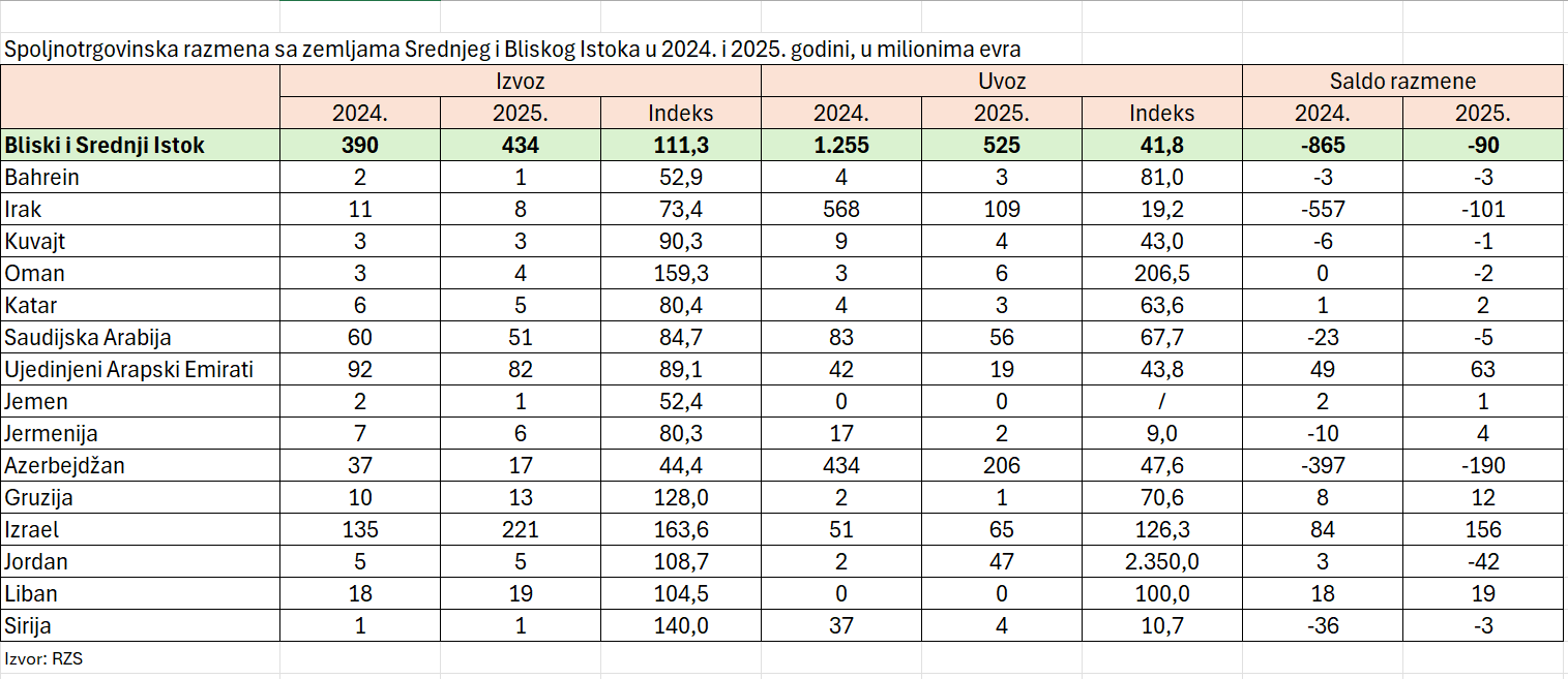 Iz Iraka smo prošle godine izvezli robu u vrednosti od osam miliona evra, a uvezli robu u vrednosti od 109 miliona evra.