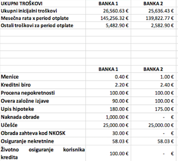 U nastavku možete videti dve ponude konkurentne ponude banaka (nećemo navoditi o kojim se bankama radi iz razloga što ne želimo da favorizujemo određene bake) podaci su dati prema trenutnim uslovima analiziranih banaka.