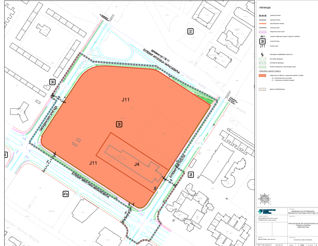Izradom plana detaljne regulacije bloka 39, predlaže se promena vrste javne namene u delu bloka, pa bi tako iz kompleksa visokoškolske ustanove on trebalo da bude izmenjen u kompleks posebne namene.