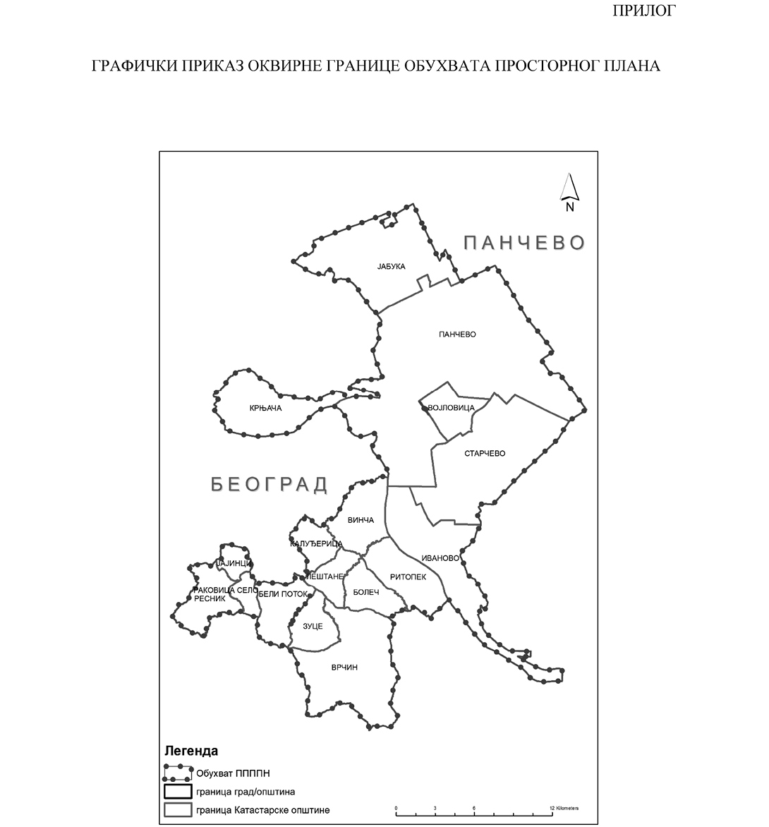 Kako se navodi, okvirna granica Prostornog plana obuhvala delove Beograda, i to opština Grocka, Voždovac, Rakovica i Palilula. Takođe, u okvire Prostornog plana spada i deo Pančeva.
